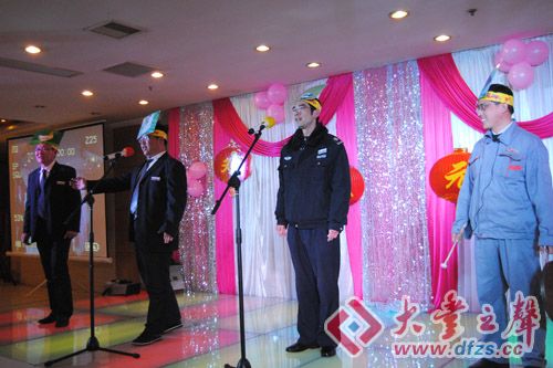 员工们自编自导的文娱节目活跃着联欢会的现场气氛。 摄影:大丰之声 晨光
