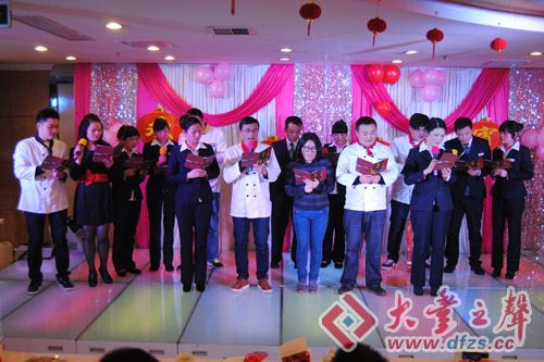 丰东大酒店的员工齐聚一堂,亲如家人。 摄影:大丰之声 晨光