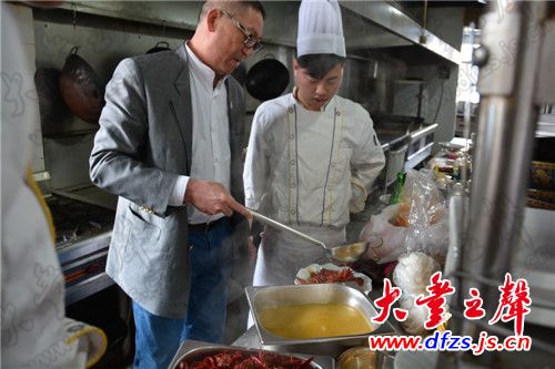 陈昌林先生现场指导凯旋门假日酒店厨师菜品制作。 近日,我市凯旋门假日酒店邀请了中国五星级龙虾烹饪大师、国家一级评委、职业技能裁判员、盱眙龙虾协会副秘书长陈昌林先生现场指导酒店厨师菜品制作。据了解,陈昌林烧制的“陈大龙虾”不仅受到当地市民的喜爱,而且也吸引了不少知名人士和外宾前去品尝。其烧制的龙虾有“麻不伤舌、辣不过口、甜而不腻、回味无穷”四大特点,在海内外享有盛誉。