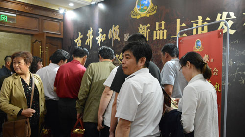 古井和顺酒新品上市发布会在大丰盛宴饭店内外营造了浓浓的喜庆氛围。
