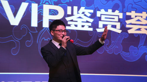 盐城市青郎商贸有限公司总经理束方兵致开场词,并介绍郎酒的独特工艺。