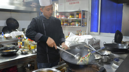 厨师长王小可说:制作鱼头捞饭的关键就是炝锅。