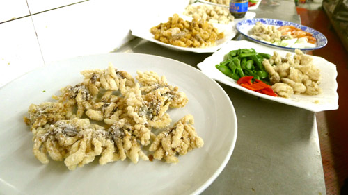 接下来配料、腌制、上粉、油煎,只等客人到齐后烹饪。