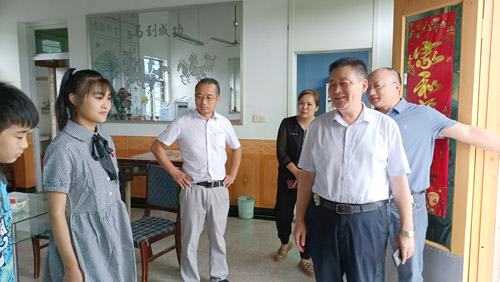 陈福涛会长了解蓉蓉姐弟的学习情况。