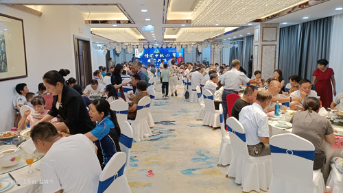 张经理和盐城市合顺商贸有限公司总经理韦珍和分别到来宾餐桌前敬酒致谢。