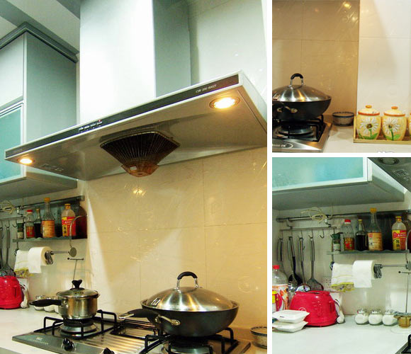 厨房的整体橱柜是太太的挑选,以清新绿色为主,感觉自然和环保。
