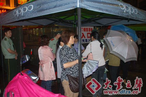 在大雨中,大丰购物中心超低价专场答谢会拉开序幕。 摄影:大丰之声 小辉