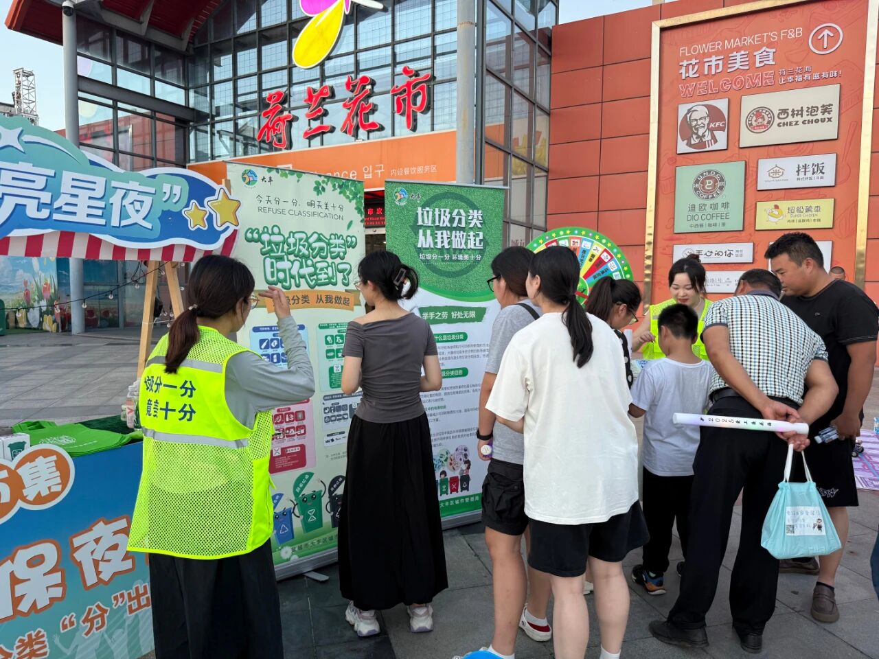 7月20日19:00,盐城市“点亮星夜”文明实践系列活动大丰专场在荷兰花海花市门口舞台热闹开启。大丰区城管局借此次活动契机,开展“环保夜宣”垃圾分类宣传活动,为夏夜文明实践增添绿色亮色。